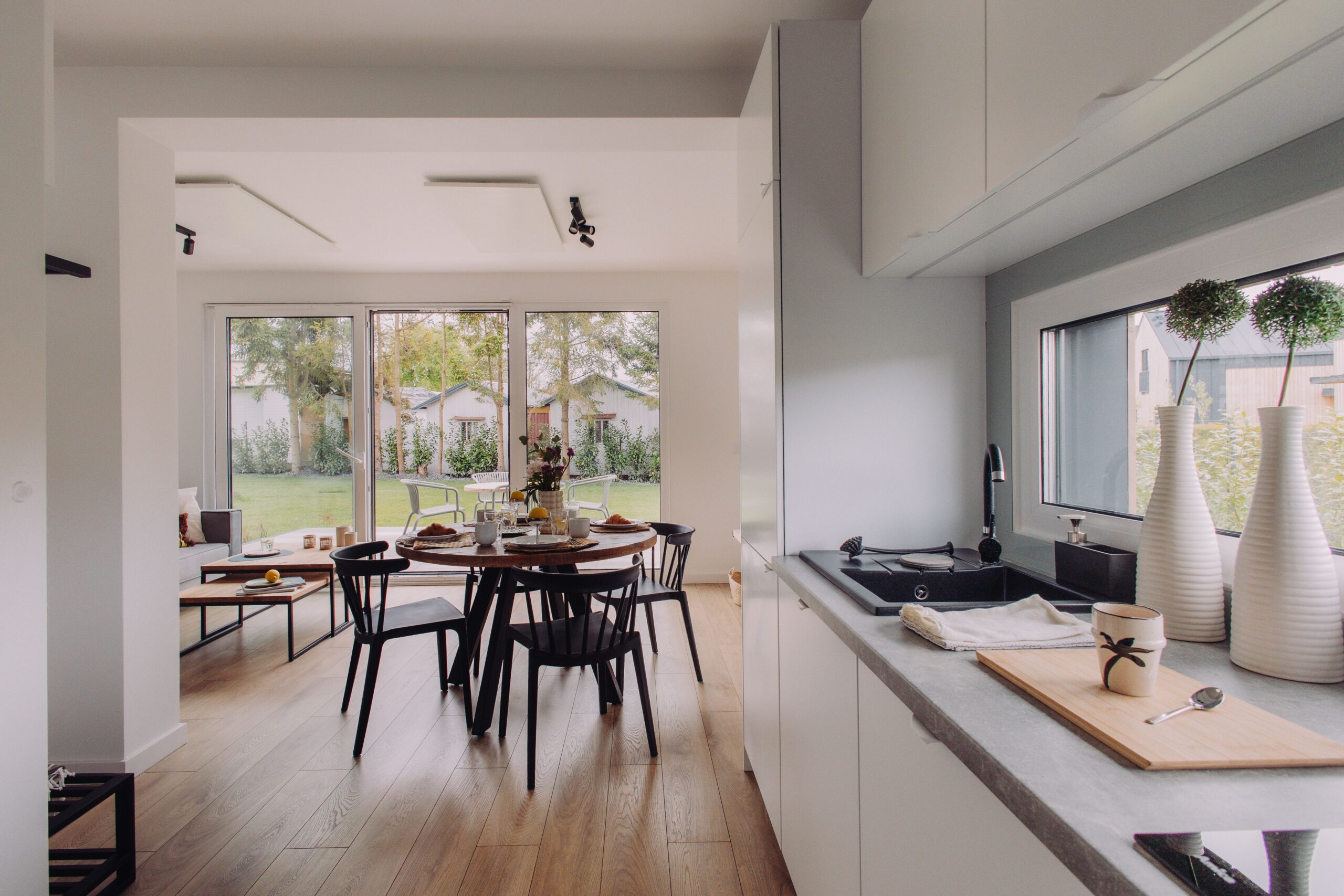 Zanurz się w przytulnym klimacie naszych domów. Naturalne drewno, ciepłe światło i starannie dobrane detale tworzą idealną przestrzeń na relaks — niezależnie od pogody.