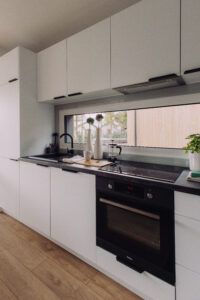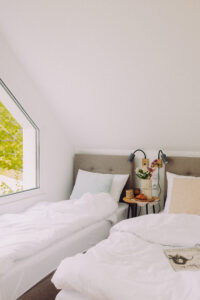Dom pomieści maksymalnie 6 osób – 4 osoby w standardzie, 2 osoby za dodatkową opłatą (sofa rozkładana w salonie).