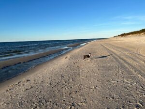 Odkryj szeroką, spokojną plażę otoczoną lasem i wydmami. Idealne miejsce na relaksujący spacer, zachód słońca i wypoczynek z dala od tłumów.